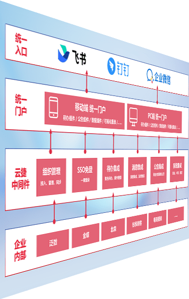 对协作平台提供支持服务,,,支持企业应用与协作平台对接,,,,包含组织同步、、消息集成、、、待办集成等。。。支持目前主流的协作平台:钉钉、、、、企微和飞书。。。。